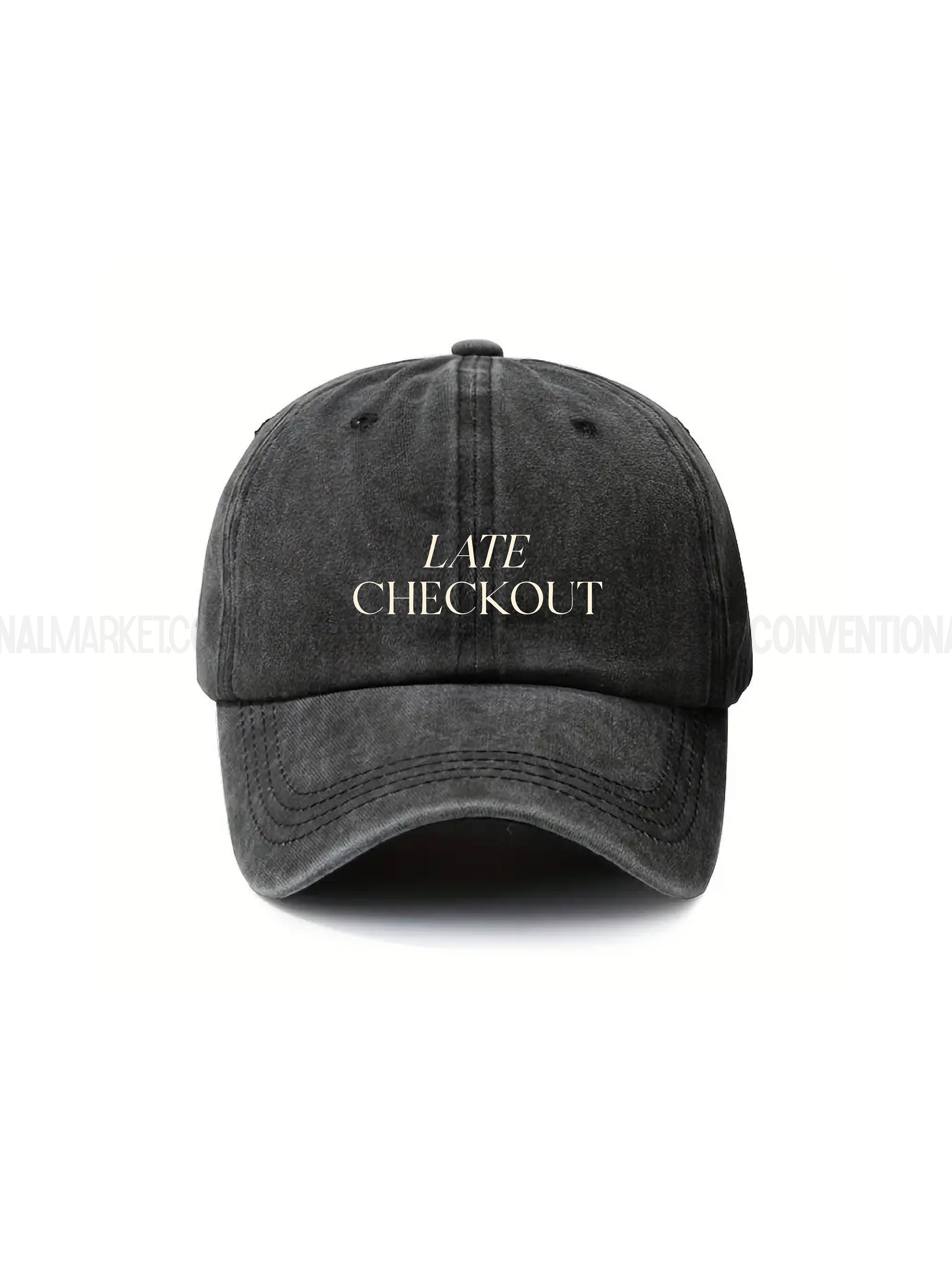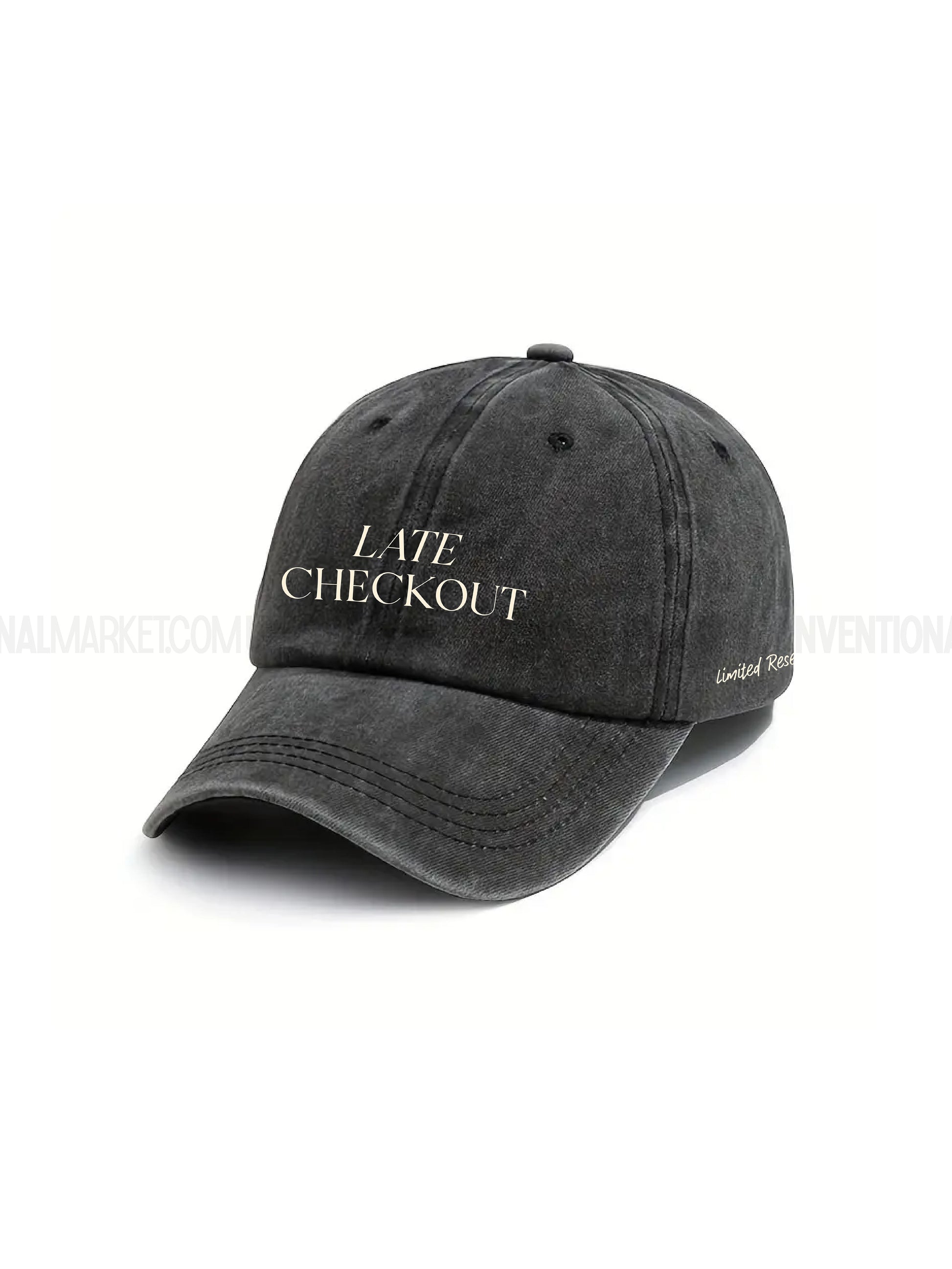 Cappello a 6 pannelli "Late CheckOut" Nero scritta Beige.