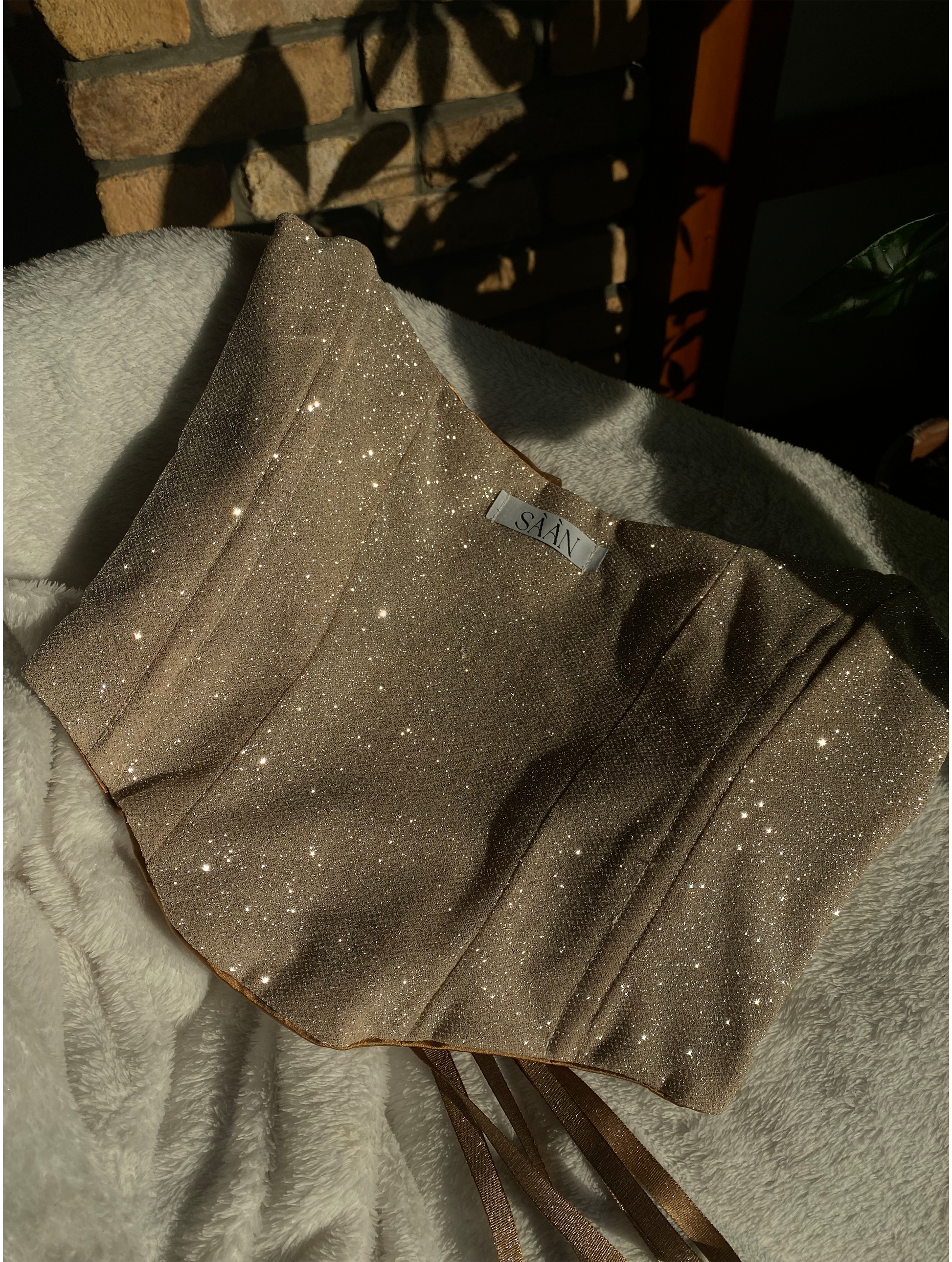 Corsetto in tulle Swarovski, realizzato interamente a mano.