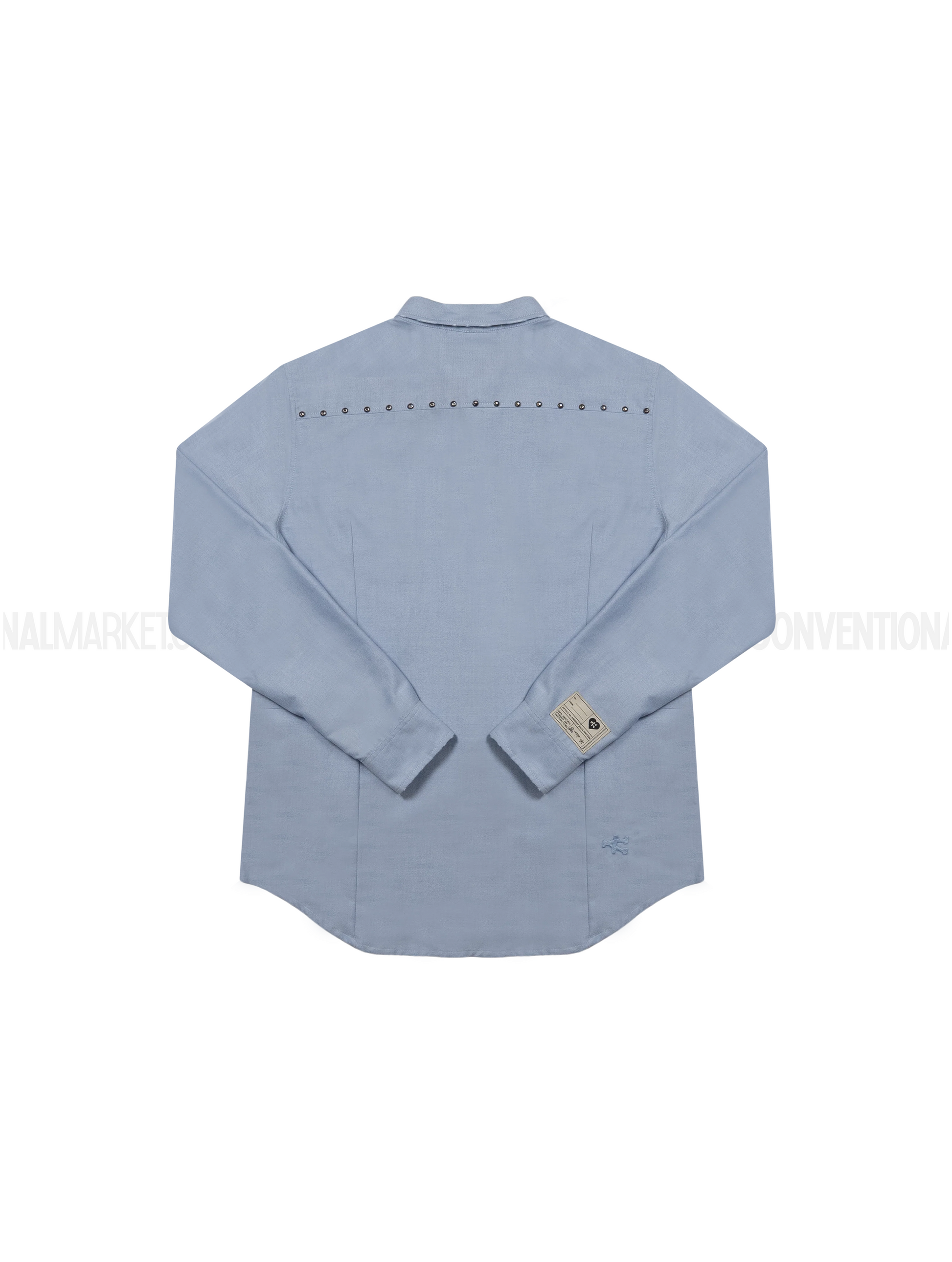 Made of fine 100% cotton oxford, this shirt combines the timeless elegance of a classic fabric with a bold, contemporary spirit. Hand-applied studs on the back and front pocket transform a formal garment into a true style statement, designed to stand out in any context. The fit is its real strength: designed with sartorial precision, it guarantees absolute comfort and a structure that enhances the silhouette without restricting movement. Defined collar, clean shoulders, modern lines-every detail is designed to dress with character and harmony.