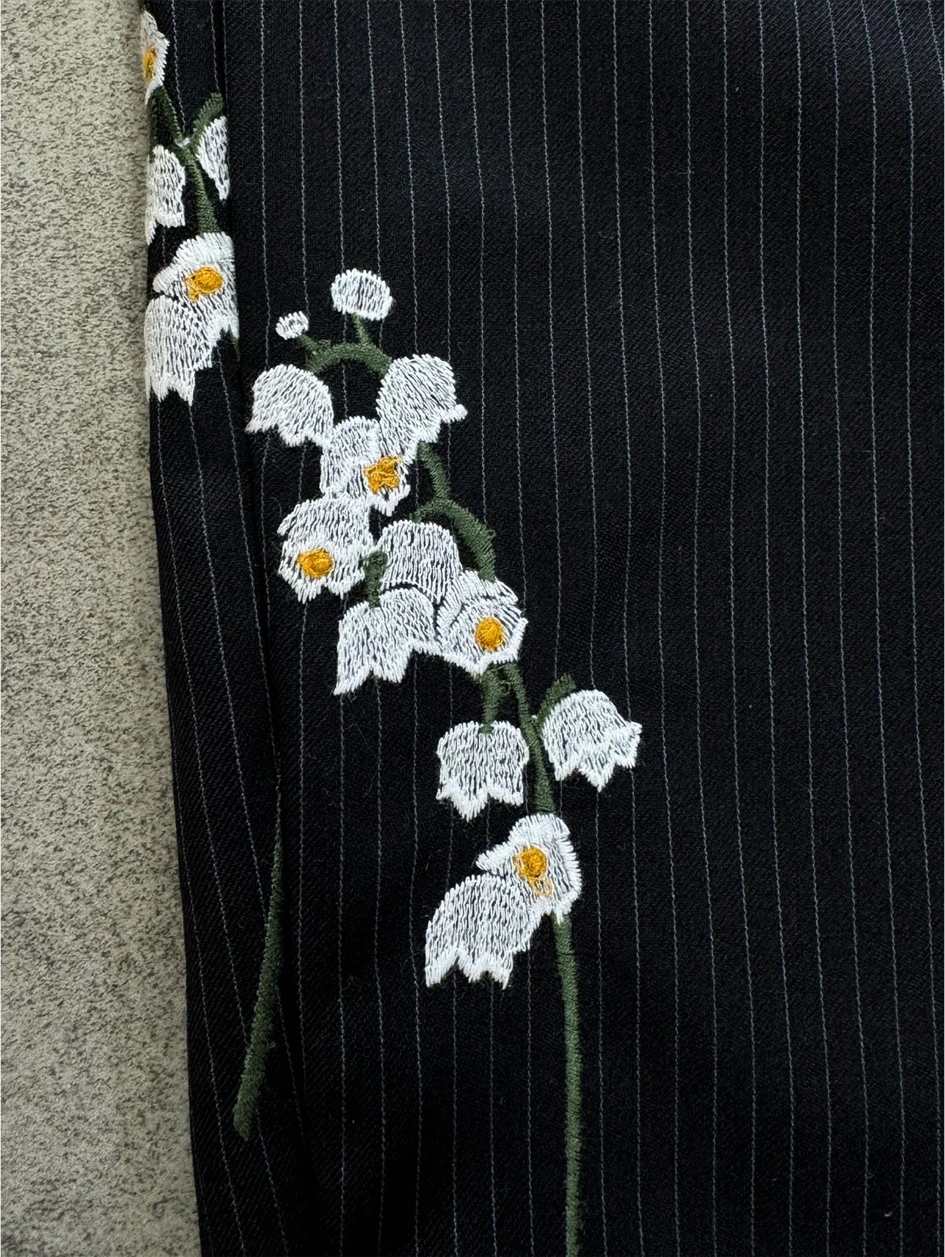 Pleated wide trousers (limited item) - Black pinstripe with daisies