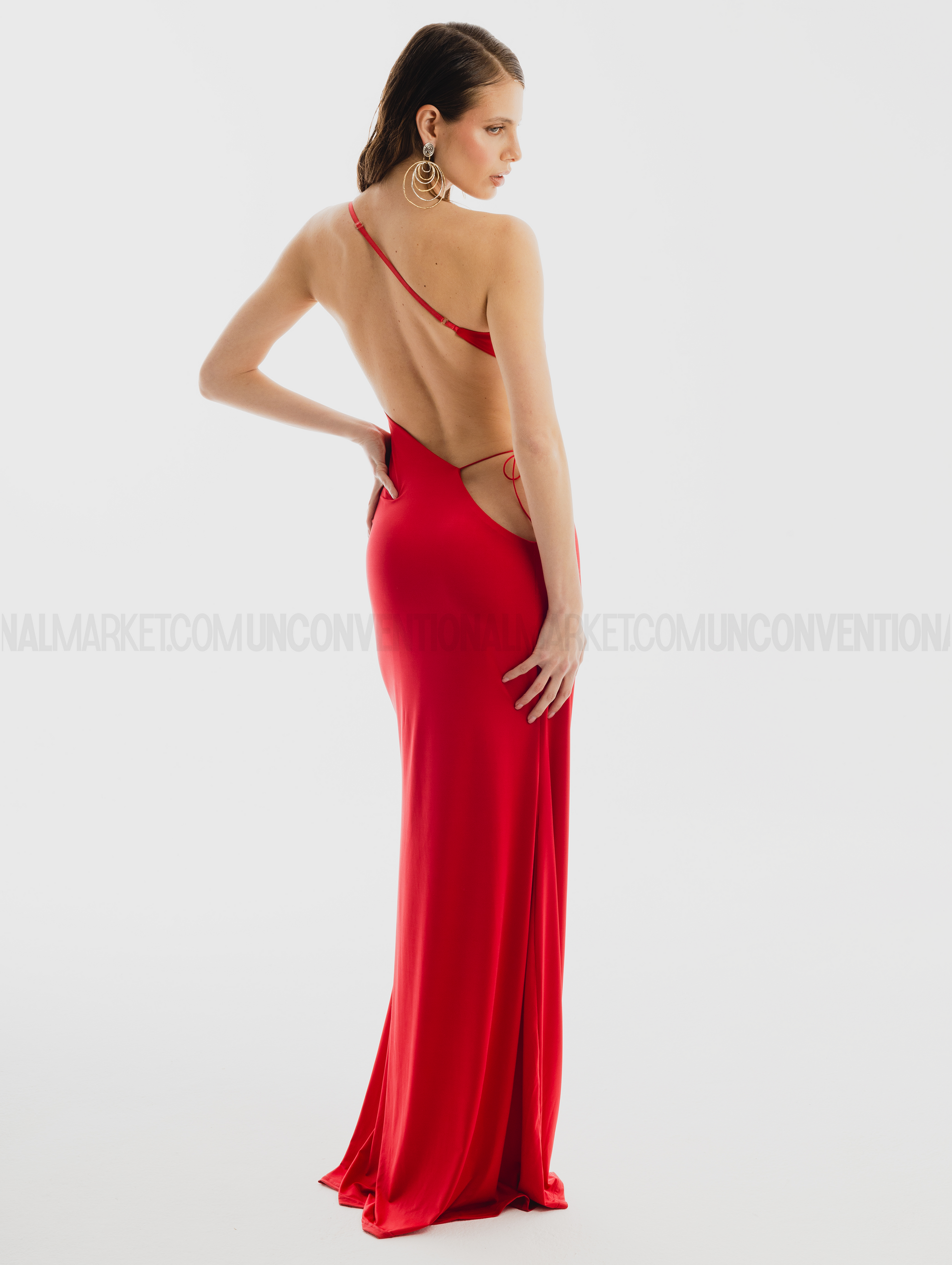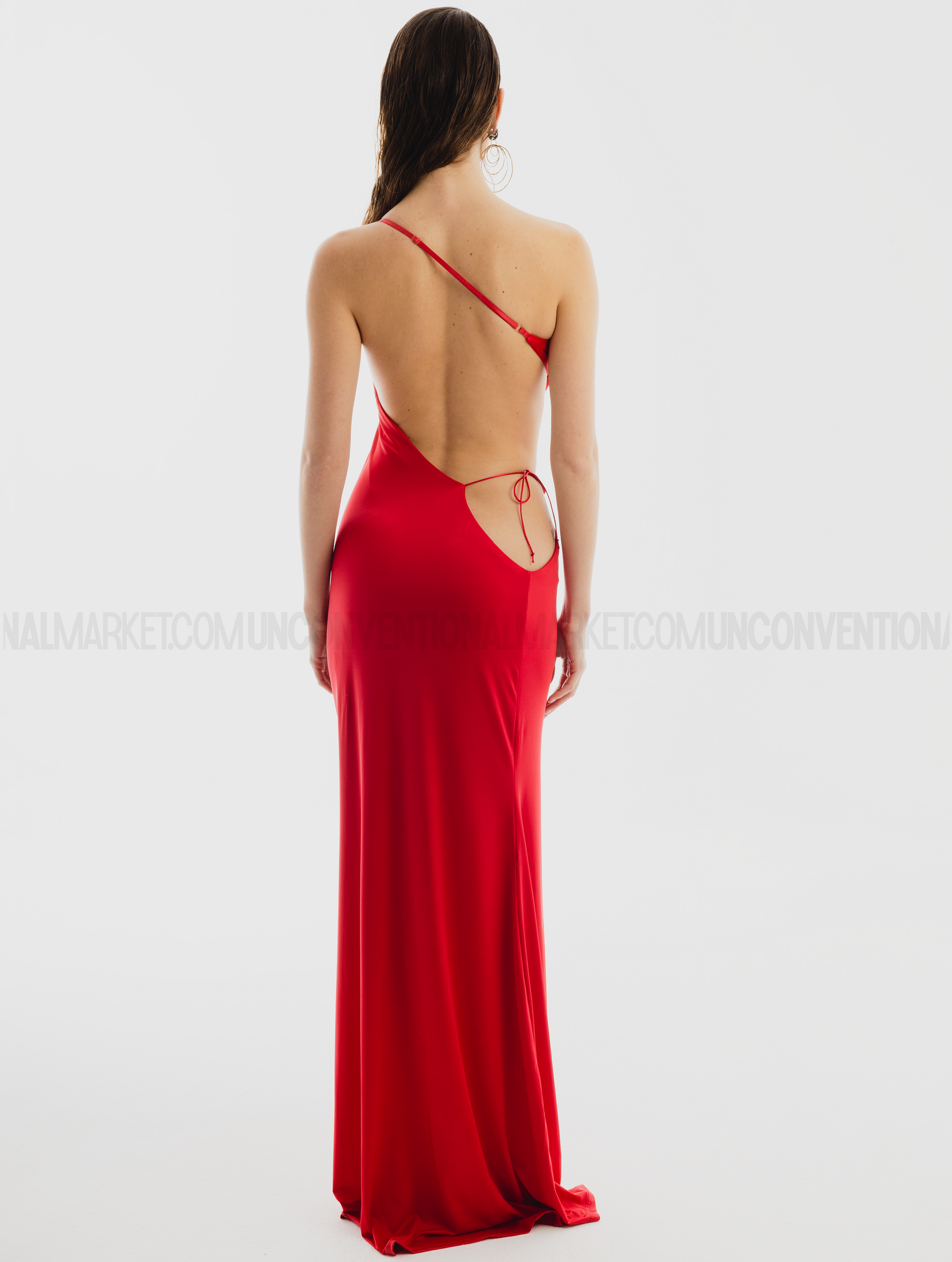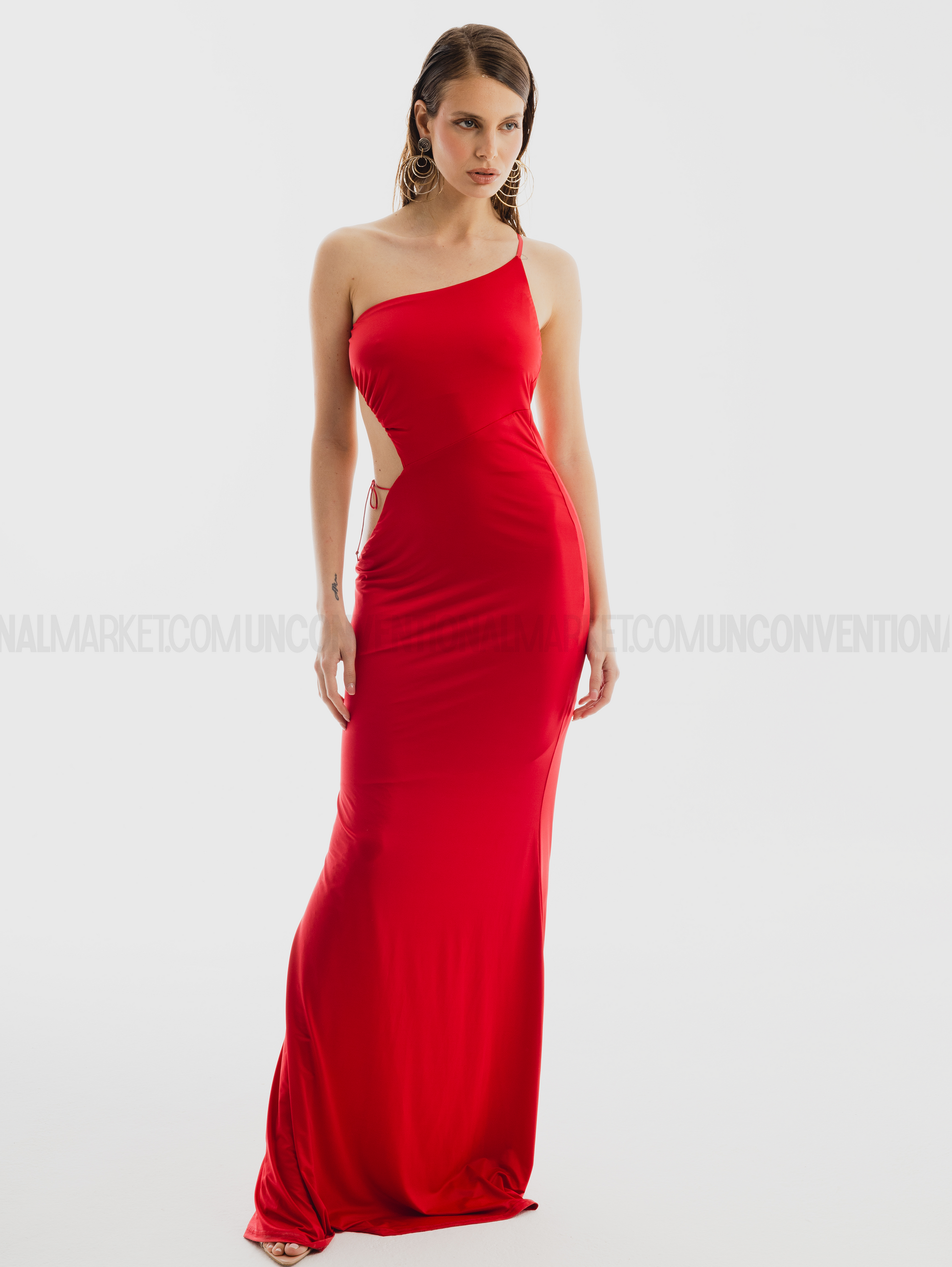 Abito lungo monospalla in jersey morbido, dal taglio strutturato e linea aderente che valorizza la silhouette, dotato di spallina regolabile.