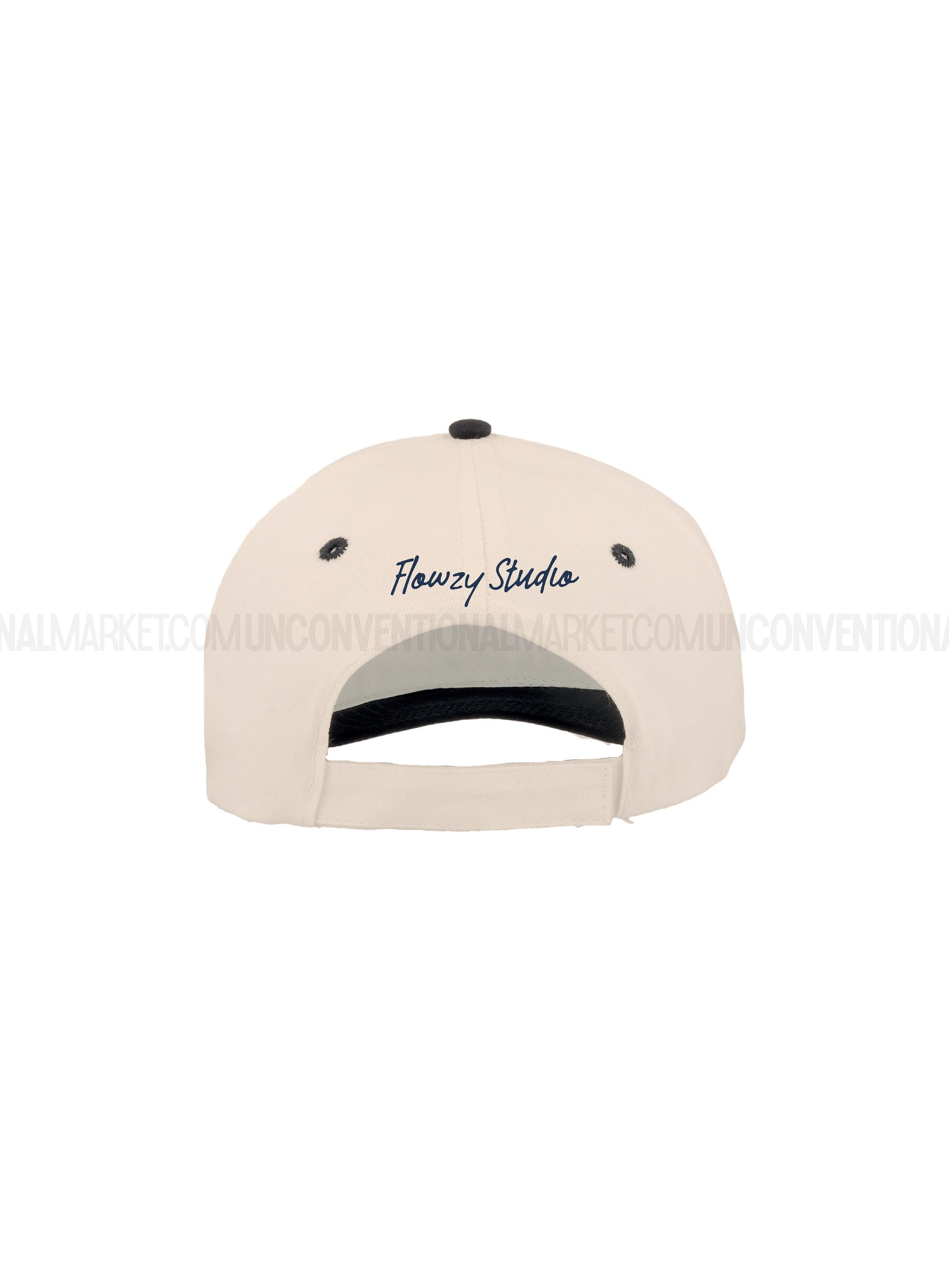 Cappello a 6 pannelli " Hot Stuff" Panna scritta Blu
