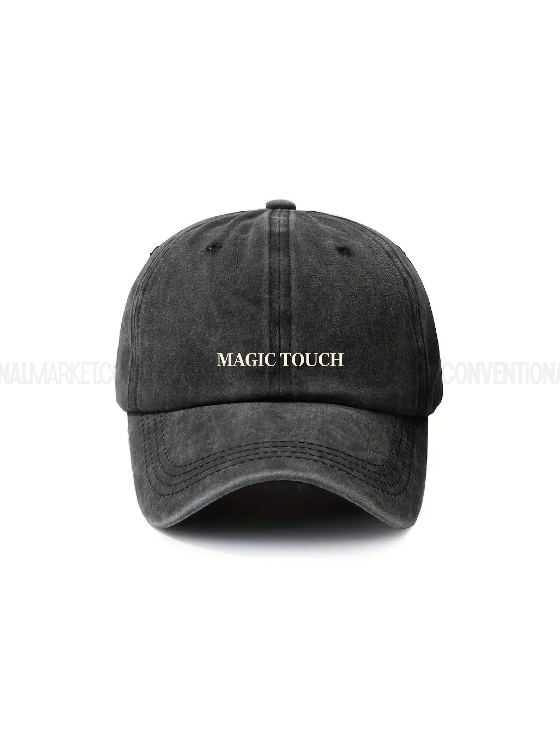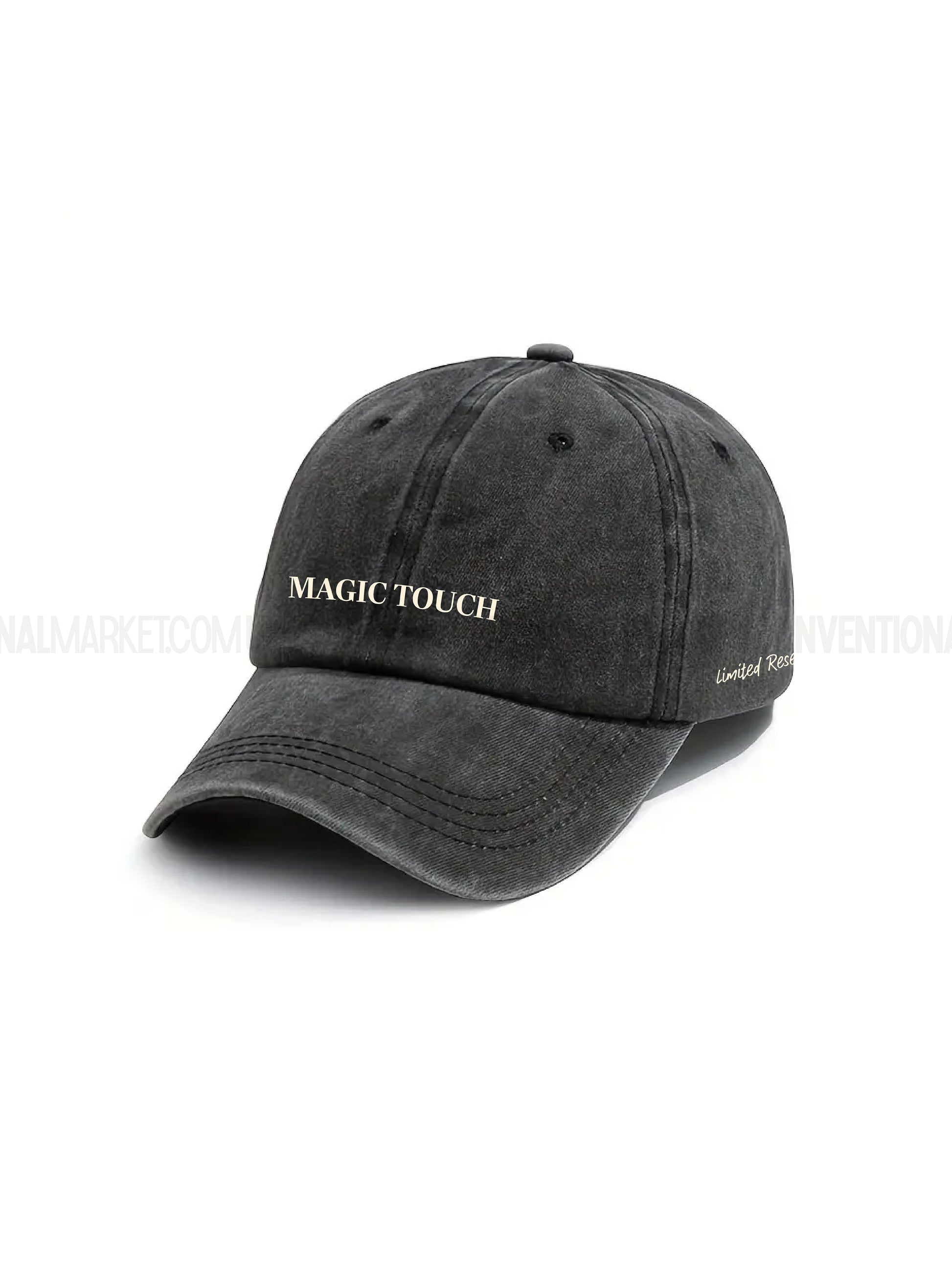 Cappello a 6 pannelli "Magic touch" Nero scritta Beige.