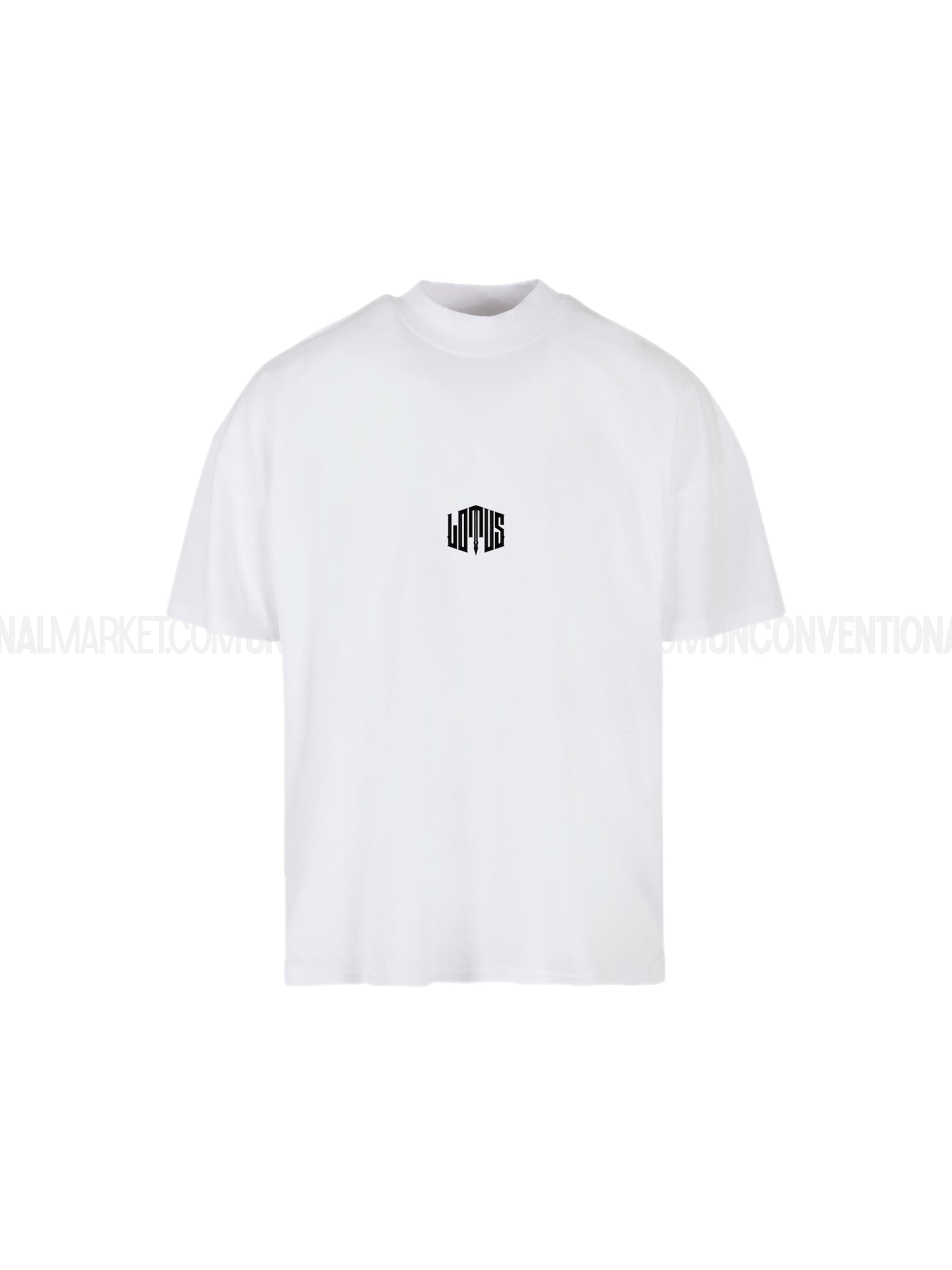 Etichetta logo stampata all’interno della maglia in DTF e dettaglio taglia cucito nell’interno del colletto;