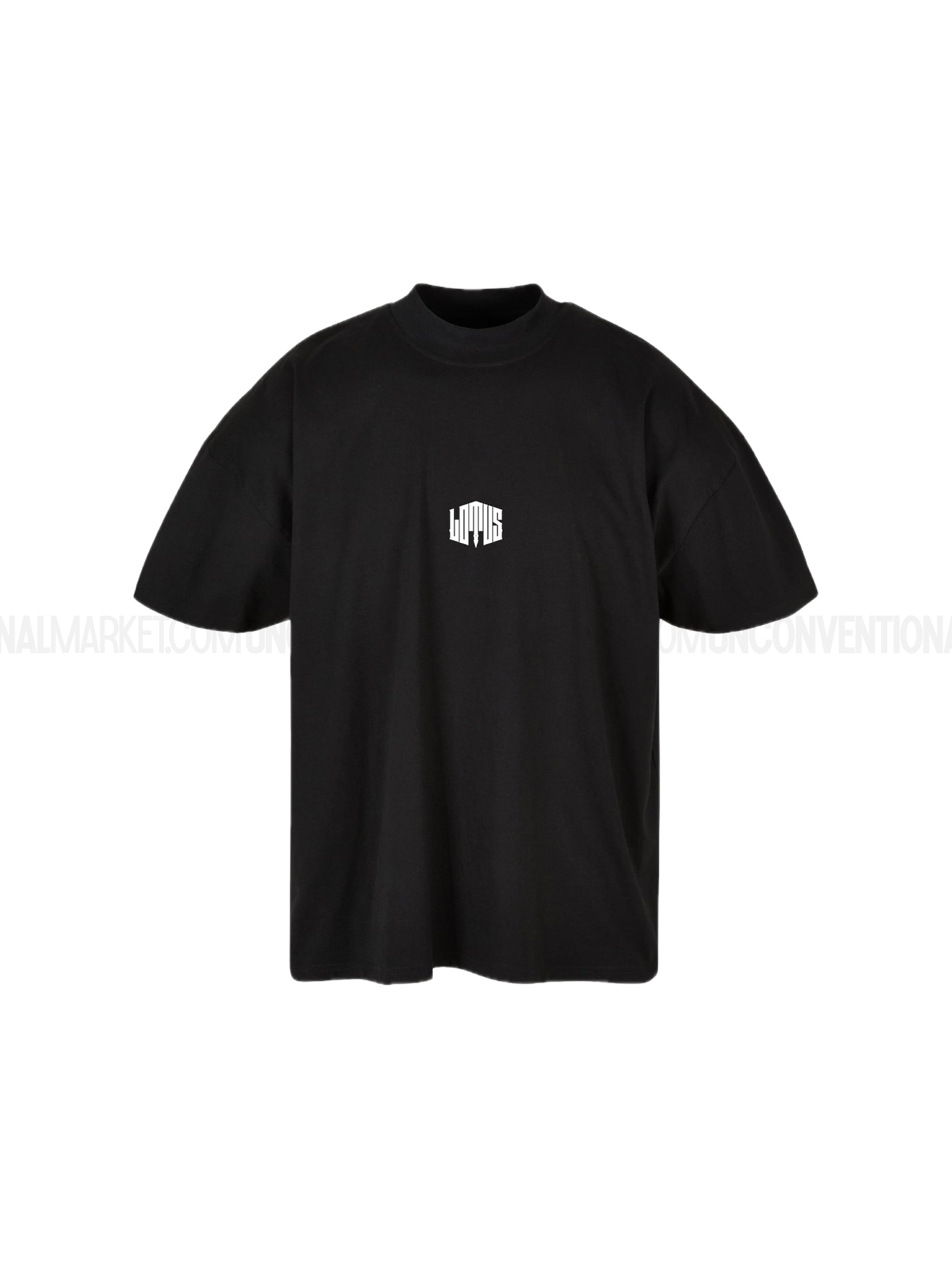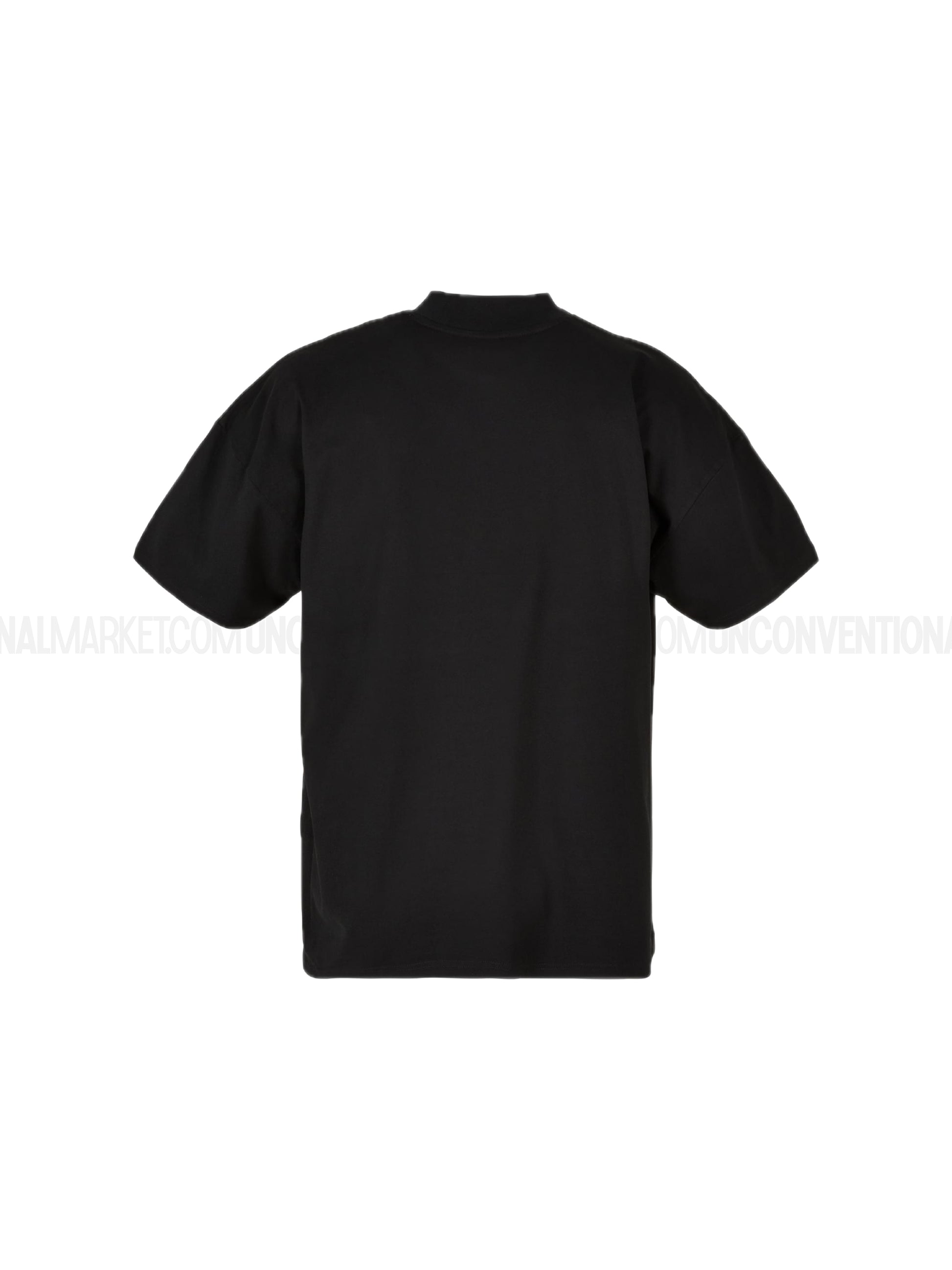 Maglia a maniche corte a costine con girocollo alto con logo ricamato a rilievo centro petto.