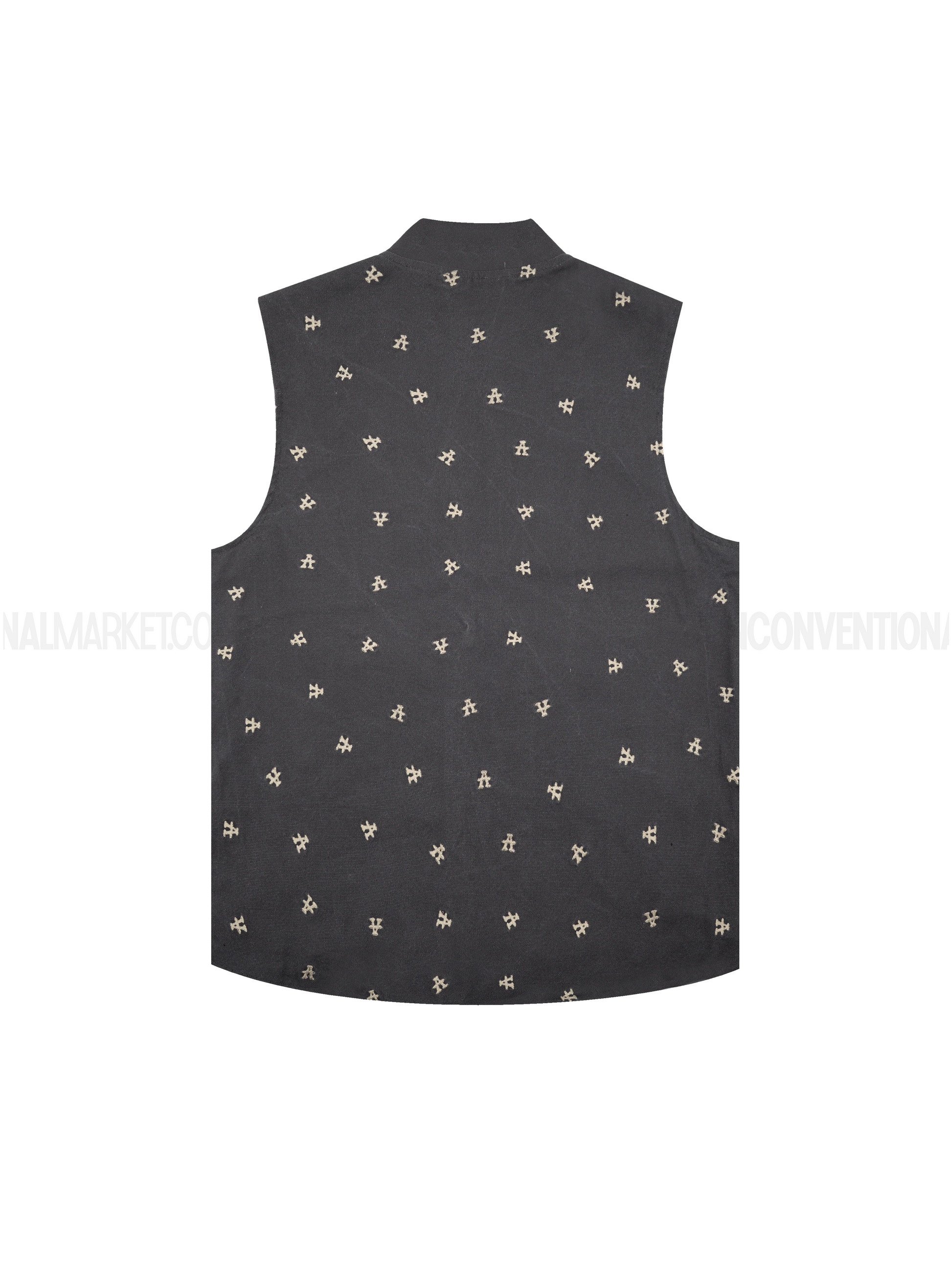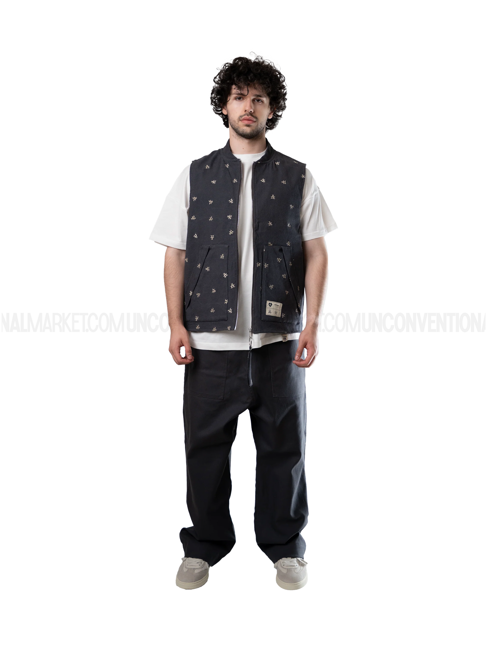Designed for those seeking a refined yet unconventional aesthetic, the sleeveless jacket maintains clean proportions and an essential design, offering a contemporary and versatile fit. It is a garment that straddles the line between workwear and luxury streetwear: durable, sophisticated, unique.